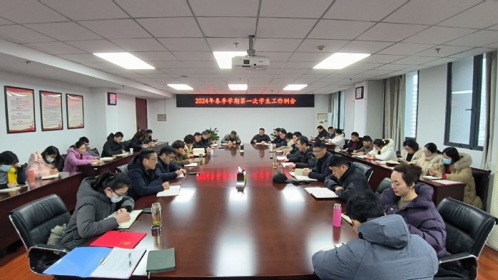 为统筹做好期初学生工作,2月21日上午,学校在行政楼807会议室召开了2024年春季学期第一次学生工作例会。相关职能部门负责人、各二级学院党委书记、副书记、学工办负责人参会,会议由学生处处长丁增云主持。