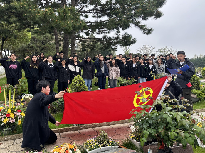 师生们集体鞠躬默哀,依次敬献鲜花,寄托追忆与不舍。在重温入团誓词仪式上,学员们面向团旗庄严宣誓,掷地有声的誓词不仅是青年团员们对作为一名合格的共青团员承诺的重申,更是表达了传承和发扬朱世群老师无私奉献精神的决心。