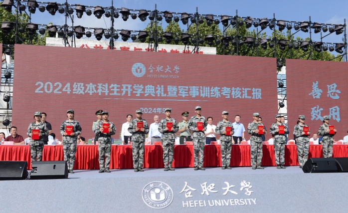 吴功福宣读了2024级本科生军事训练表彰文件,与会领导为军训先进集体和先进个人代表依次颁奖,共有6个二级学院获得“军训优秀组织”荣誉称号,200名学生获得“军训先进个人”荣誉称号。