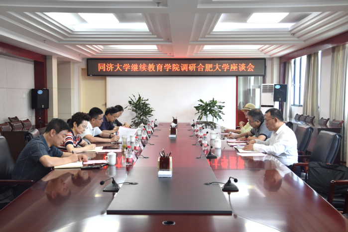 5月22日,同济大学继续教育学院院长金福安带队来校调研交流。我校于行政楼九楼东会议室召开座谈会,党委副书记、校长任永出席并主持会议。相关职能部门负责人参加会议。