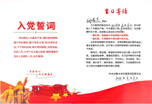 6月26日,教育学院举办了一场别开生面、意义深远的党员政治生日座谈会。院党委书记刘良宏通过线下会场与线上直播同步致辞,向过政治生日的党员致以诚挚的祝贺。党员们分享了自己的入党初心和成长历程。教育学院预备党员李星雨同学表示,将永远铭记这一光荣时刻,在今后的学习生活中严格要求自己,用实际行动践行入党誓词,不辜负党组织的培养和期望。