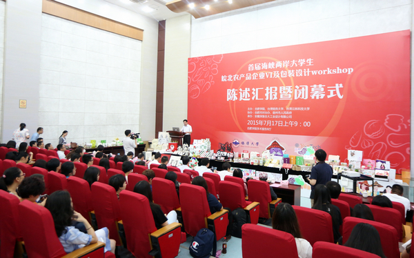 7月17日,在安徽省人民政府台湾事务办公室、合肥市人民政府、合肥市人民政府台湾事务办公室、宿州市人民政府、宿州市农业委员会的大力支持下,由合肥学院、台湾铭传大学、台湾云林科技大学共同主办,合肥市人民政府台湾事务办公室、宿州市人民政府协办,安徽深装合大工业设计有限公司承办的“首届海峡两岸皖北农产品企业VI及包装设计workshop”项目,在两岸80余名师生的共同努力下,在合肥学院图书馆学术报告厅圆满落幕。安徽省台办副主任汪泗淇,合肥市委副书记、“纪念刘铭传首任台湾巡抚130周年”系列活动合肥市筹备领导小组组长凌云,合肥学院党委书记蔡敬民,校长张文兵,党委副书记丁明,合肥市委副秘书长毛万里,安徽省台办交流联络处副调研员邵琳,安徽省教育厅外事处副调研员孔德俊,宿州市农委副主任段梅英,合肥市台办副主任胡卫平,宿州市农委产业办主任周澍,台湾铭传大学教授林建华、方菁容等出席。陈述汇报暨闭幕式由合肥学院副校长刘建中主持。