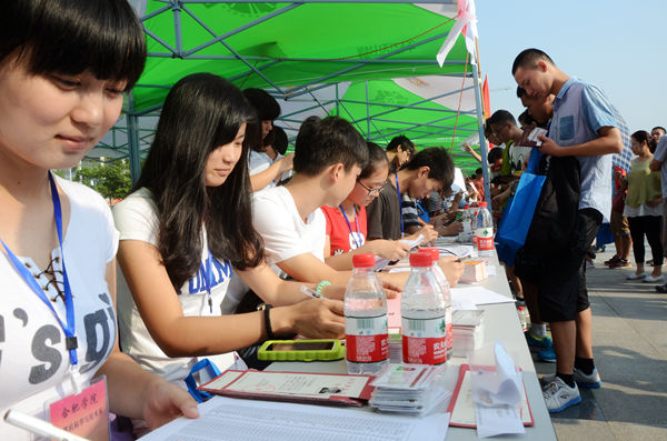 9月9日是合肥学院2015级新生报到的第一天。据了解,今年不少2015级新生提前来校报到,校园中到处洋溢着欢乐的气氛。从9日早上7点开始,校门前的始信路和锦绣大道上便车水马龙,校园内人潮涌动,千余名新生齐聚南滟湖畔。