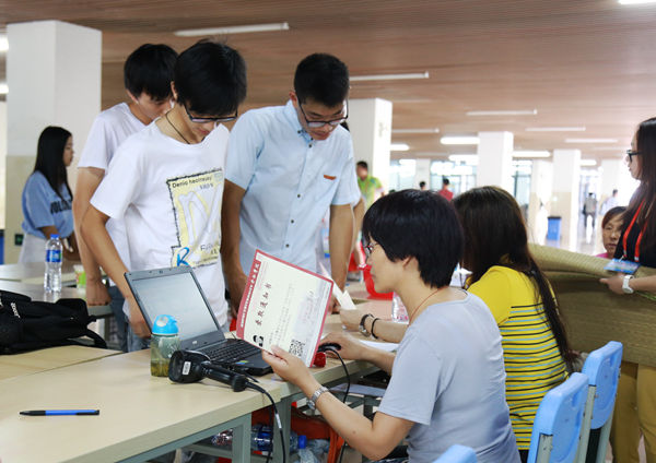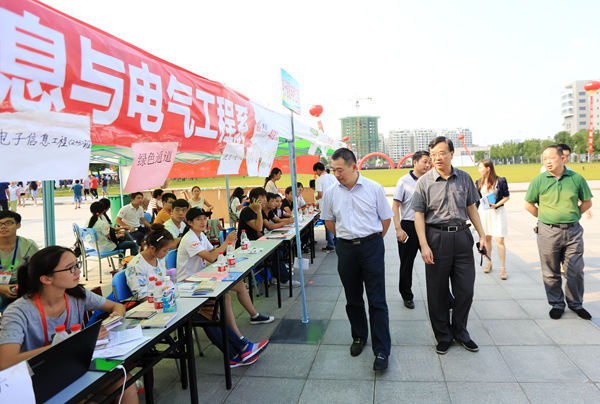 9月9日至10日,合肥学院校园内彩旗飘扬,人潮涌动,喜迎2015级新生入学。在学校相关部门和各系的共同努力、协同配合下,2015级本科生、研究生新生报到工作顺利进行,共有近百名教工和千名学生志愿者参与了迎新工作。校领导张文兵、丁明等亲临现场,检查、指导迎新工作并向为迎新工作付出辛勤劳动的师生表示慰问和感谢。今年我校的迎新工作更加突出了“信息化、人性化”的特点,高效、便捷的迎新工作赢得了新生和家长们的连连称赞。
