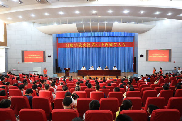 9月9日,为纪念抗战胜利七十周年、弘扬尊师重道的社会美德、领导广大教职工建设一流的地方应用型大学,我校第31个教师节大会在图书馆A厅举行。党委副书记、校长张文兵,党委副书记丁明,纪委书记洪家友,副校长刘建中,校督导员郑永红及数百名教职工到场参加大会。大会由丁明主持。