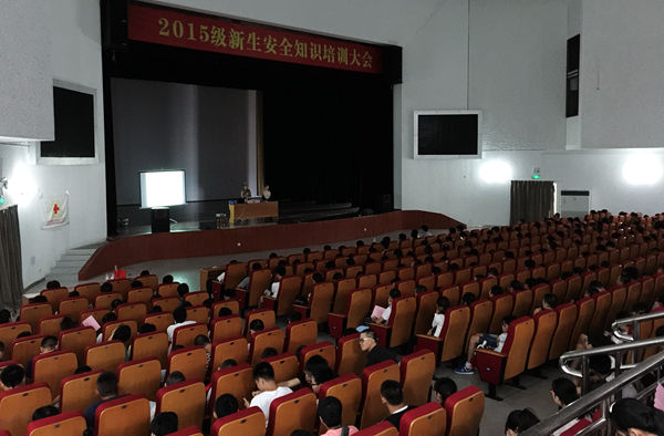 新生入学教育是新生进入大学的第一课,我校2015级新生入学教育较之以往有所不同,主要从大学理想信念教育、专业思想教育、爱校荣校教育学涯规划教育、廉洁诚信教育、安全防范教育、心理健康常识教育等七个专题入手,9月11日至12日,急救与疾病防控知识培训作为新生入学第一课在校致用礼堂拉开序幕,培训会由学生处副处长许刚主持。