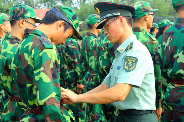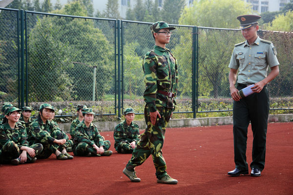 严格的训练中,亦有轻松一刻。随着夜幕的降临,训练场上传来阵阵欢笑声,原来是为增进对彼此的了解,新生“非诚勿扰”的游戏融入军训中,获选者必须向场下的同学们进行自我介绍。同学们热烈掌声与欢呼声中14连的教官演唱了一首红歌,伴着歌声同学们不由自主地打起了节拍,轻声应和着。“他们都很天真单纯可爱,和他们一起很开心。”教官表示,“其实军训希望给他们精神上的教育,让他们懂得坚持,加强同学们凝聚力,更增加他们的国防意识。