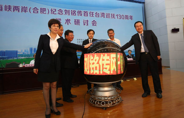 9月24日,海峡两岸(合肥)纪念刘铭传首任台湾巡抚130周年学术研讨会在合肥学院召开。在大会开幕式上,海峡两岸关系协会副会长孙亚夫安徽省人民政府副省长谢广台湾两岸和平发展联合会主席蓝博洲、铭传大学校长李铨、合肥市委副书记凌云我校党委书记蔡敬民共同为“合肥学院刘铭传网上纪念馆”启动了开馆仪式据了解,刘铭传网上纪念馆在9月中旬已试运行,打开合肥学院官网,即可见刘铭传网上纪念馆的浮动窗口,点击即可进入。