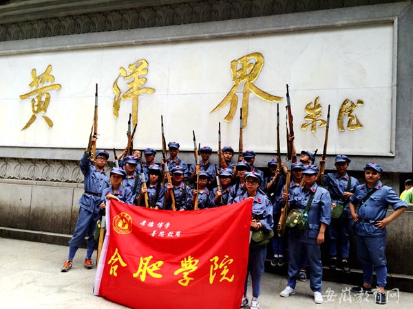 各系“三下乡”社会志愿服务队赴社区各居委会走访当地老党员,认真学习老一辈的革命精神,深刻了解老党员的心路历程与入党感悟。管理系服务队在海恒社区开展党员走访活动,还以“反腐倡廉”及“当代大学生成为党员应具备的素质”为主题展开交流学习,组织居民观看抗日宣传片《闪闪的红星》,铭记历史,纪念抗战胜利。机械工程系开展“勿忘历史珍惜当下”系列活动,听老党员追忆红色回忆,见证历史事实,学习革命精神,发扬优良传统。旅游系组建的“井冈情·中国梦”大学生暑期实践团队在全国青少年井冈山革命传统教育基地,学习了《三湾改编》《井冈丰碑》,前往大井朱毛旧居及领袖峰学习毛泽东坚持学习、勇于探索等井冈山精神,并在此过程中进行了实地调研。电子信息与电气工程系志愿者服务队前往了大别山烈士陵园,瞻仰烈士墓、纪念碑,以鞠躬敬礼的方式表达对革命先烈的崇高敬意。教育系志愿者们前往徽州区岩寺镇新四军军部旧址参观学习分别开展了重温入党誓词、入团宣誓活动,活动开展增强了队员们的爱国热情,有利于引导大家更好地传承革命先烈优秀精神,铭记历史,爱国奋进。