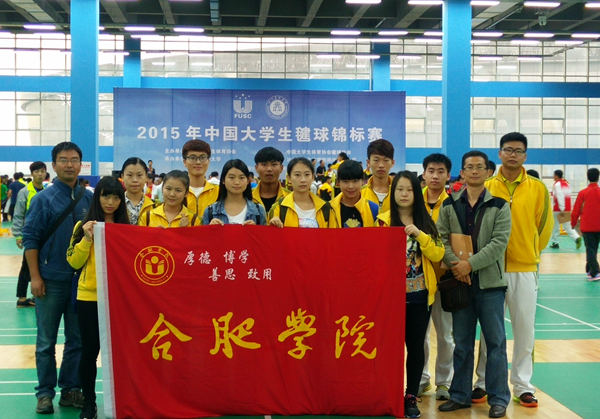 2015年全国大学生毽球锦标赛于10月30日在四川医科大学落下帷幕,合肥学院毽球代表队在汤攀、汪征两位老师带领下,12名队员共同奋力拼搏中,荣获了甲组第五名、乙组第四名、丙组第四名等整体优异成绩。