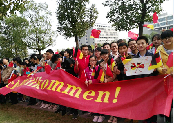 每当说起10月30日李克强总理同德国总理默克尔共同来我校考察时,每个有幸来到现场的人都还是激动不已,对发生的一切都历历在目。当总理走进人群,又折返到学生周围,跟大家握手、拥抱。“有个男孩子高兴地不得了,举个牌子过来,到总理跟前又不好意思了,把牌子收起来。总理笑着问牌子写的啥?打开一看是‘克强总理好,总算等到你’。