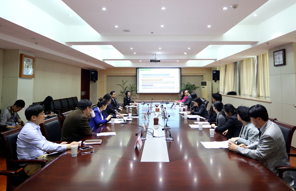 刘建中一行与世宗财团代表在九楼西会议室召开会议,商讨在我校建设世宗学堂的具体情况。会议伊始,刘建中介绍我校教育与研究生教育,对外合作办学,以及外国语言系重视对韩语的教学,因为我校开放的教学特点,有很外国留学生,也有很多中国学生对韩国文化和韩国语感兴趣。刘建中表示我校高度重视与韩国济州汉拿大学合作建立世宗学堂的工作,积极协调学校各个部门的相互配合,给予最大力度的支持与帮助,在场地提供、设施使用、经费支持、选派优秀师资等方面做好充分准备,保证世宗学堂的顺利运营。接着,外语系书记余勇向尹度畯等人说明我校韩语专业的发展以及合肥市对韩国语的需求,并希望形成资源共享,优势互补的合作氛围。此外,双方就派遣教师、教师资质、教学情况、双方投入等方面进行了深入探讨。会后,考察团分别与世宗学堂学堂长、工作人员和韩语教师进行了三个小时的面对面交流。