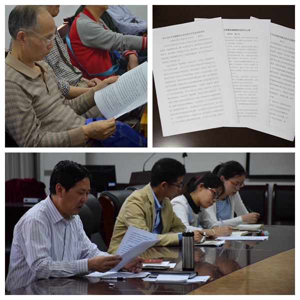 目前,学校上下正在广泛开展学习习近平总书记来安徽调研考察重要讲话活动。各支部把学习讲话精神作为“两学一做”学习教育的重要内容,通过座谈会、心得体会交流会等形式,把学习教育引向深入。许多师生党员还主动向组织递交了学习心得体会文章。旅游系辅导员童广路表示:习近平总书记的重要讲话,为我们更深刻把握社会主义核心价值观提供了指南。作为一名党员,对于干事创业要有食不甘味、寝不安席的高度自觉,要有一日不为、三日不安的责任担当,不断加强自身修养,勤学、修德、明辨、笃实,以社会主义核心价值观作为自己的基本遵循,并用之感召学生、带动学生。许多学生党员表示:从习近平总书记视察科大的重要讲话中,我们能够强烈感受到党和国家对我们这代大学生的期待。作为大学生,应该树立正确的理想信念,做好价值选择和人生规划,与祖国和人民同行,做有理想、有追求、有担当、有作为、有品质、有修养的“六有”大学生,报效祖国,服务人民。(党委宣传部)