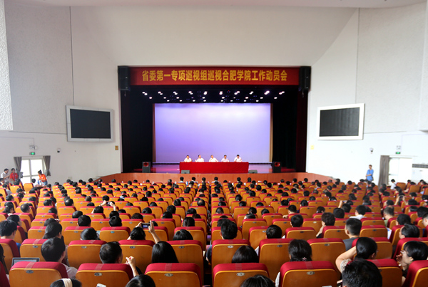 根据省委部署和省委巡视工作领导小组的统一安排,第一专项巡视组从7月18日起对合肥学院开展巡视。18日上午,召开了巡视工作动员会,巡视组组长罗昌平作动员报告,合肥市委常委、纪委书记汪学致代表市委作重要讲话,学院党委书记蔡敬民主持会议并作表态发言。省委第一专项巡视组副组长李晓清及巡视组成员,合肥学院全体党员干部,2011年以来退休的正教授党员和处级以上党员干部、省“两代表一委员”参加了会议。