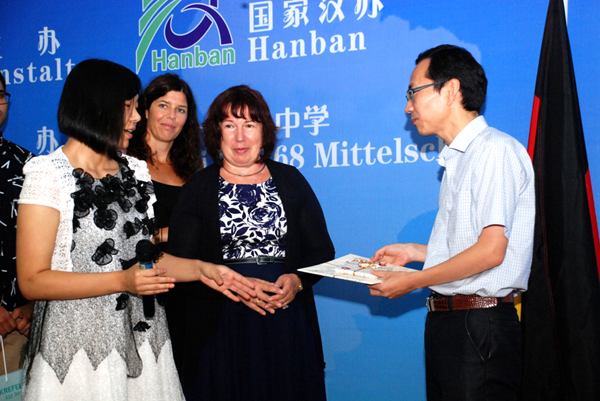 仪式结束后,双方互赠纪念品并合影留念。据悉,今年来中国参加“汉语桥-德国中学生夏令营”活动的德国中学生主要来自德国汉诺威孔子学院、不莱梅孔子学院、莱比锡孔子学院,夏令营活动期间,他们将走入中国中学课堂,深入学习和体验中国语言及传统文化,切身感受中国的传统文化氛围。