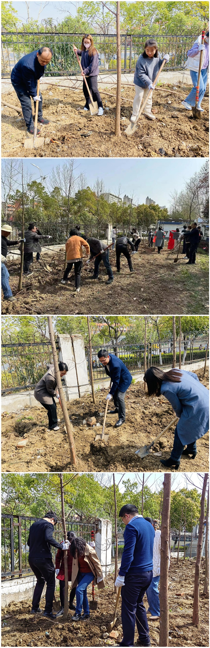 多年来,学校大后勤四个支部的党员同志多次在校园内开展植树、种花等形式多样的主题党日活动,各位党员同志在活动中增强了自身的凝聚力,提升了党员的政治觉悟。大家纷纷表示,将以此次活动为契机,带动身边更多的人参与到植绿护绿、生态环保中来,为建设绿色校园做出积极贡献。