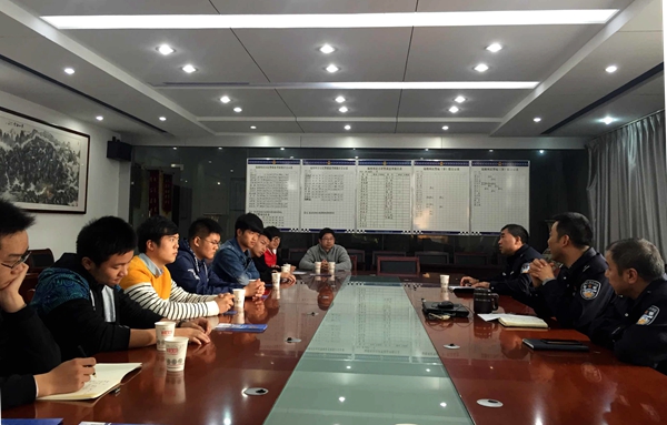 座谈会开始,陈建所长简单介绍了派出所及辖区内一些基本情况,指出合肥学院是我市唯一的一所市属本科院校,确保学校安全稳定是我们义不容辞的责任,锦绣派出所将继续加大校园及周边的治安巡逻力度,定期向学校通报周边治安环境状况。通过各种形式加强对学校师生的安全教育和培训,大力开展法律进校园系列活动,不断提高广大师生的法律意识,营造和谐稳定的学习环境。阚副所长和刘队长分别就发生在学生身边的案例和一些基本安全防范知识进行了详细的介绍。座谈会上,许刚代表学校对锦绣派出所在维护学校治安方面和对长期帮助学校开展学生法制、安全教育和及时处置侵害学校及师生利益的违法违规事件表示感谢,并就下一步如何做好警民共建提出:一是要保障信息渠道畅通,通过建立QQ群、飞信群、微信等,实现公安机关与学校、民警与学生间的信息互动,及时将一些安全防范的知识、案列传达给学生,并听取学生心声,提高学生防范意识。二是要加强警校互动,拉近警民距离,邀请公安民警来校开展防盗、防抢、防诈骗等方面的安全知识讲座,同时选派师生代表到公安机关参观学习。三是要加强校内安全工作,牢固树立预防为主的意识,加强校内安全巡逻力度,尤其是夜间和假期期间巡逻;充分利用现有监控设备和门禁系统,加强对校外人员的出入管理,切实保障师生安全。四是希望建立健全交流平台,创新共建工作机制,进一步增进民警和学校师生之间的友谊,实现优势互补、资源共享、共同发展目标。座谈会后我校学子共同参观了派出所指挥调度中心。