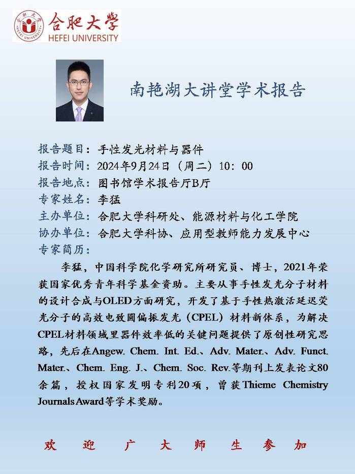 【南艳湖大讲堂】手性发光材料与器件