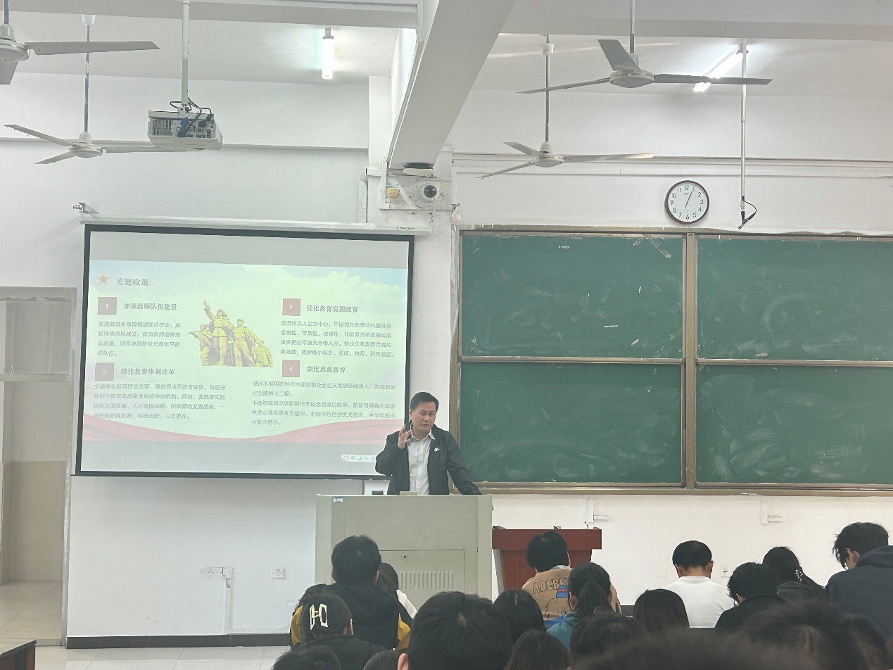 在“全国教育大会讲话精神”的解读环节,王晓峰用四点进行了概括。第一是加强教师队伍建设,实施教育家精神强师行动,加强师德师风建设,提高教师培养培训质量,培养新时代高水平教师队伍。第二是优化教育资源配置,坚持以人民为中心,不断提升教育公共服务的可及性、便捷性,让教育改革发展成果更多更公平惠及全体人民。推动义务教育优质均衡发展,逐步缩小城乡、区域、校际、群体差距。第三是深化教育体制改革,全面深化教育综合改革,推进高水平教育开放,构建好有利于教育高质量发展的体制机制。第四是强化思政教育,不断加强和改进新时代学校思想政治教育,教育引导青少年学生坚定马克思主义信仰、中国特色社会主义信念、中华民族伟大复兴信心。