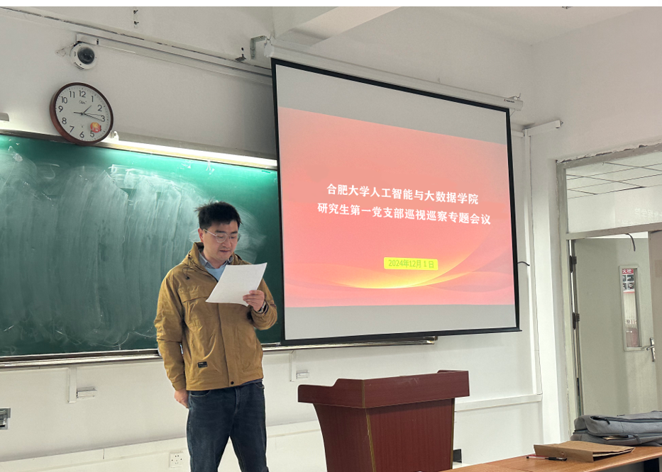 2024年12月1日下午,人工智能与大数据学院研究生第一党支部在36栋210教室开展了巡视巡察专题学习,此次活动旨在深入贯彻习近平总书记关于巡视工作的重要指示精神,扎实做好研究生第一党支部巡视巡察工作,以有力有效政治巡视促进党支部高质量发展。