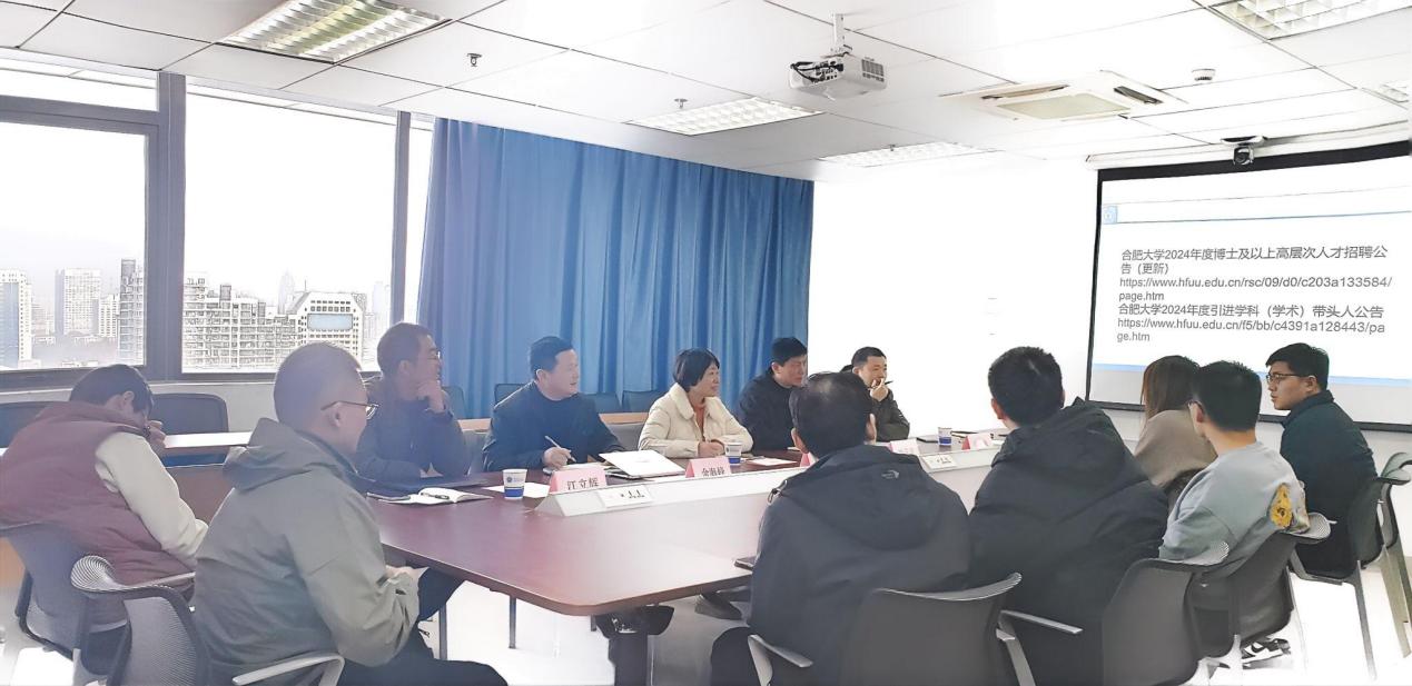 会议第二阶段,为引进高层次人才,学院面向中科大数学学院的博士们进行了宣讲。余海峰详细介绍了学校的发展前景、科研环境、人才政策等方面的优势和吸引力。学院的老师们与在场的高层次人才进行了面对面的交流,解答了他们关于职业发展、团队建设以及科研环境等方面的疑问。