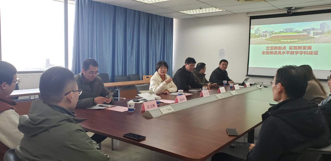 中科大数学科学学院院长黄文首先致欢迎词,拉开了交流会序幕。接着,牛欣对科大数学学院给与的这次学习的机会表示衷心的感谢,并说明了此次来学习交流的目的,最后介绍了学院党建工作的做法与困惑。随后,双方就党建工作经验与特色活动展开深入交流,分享各自的成功做法与经验。然后在研究生人才培养和师资队伍建设方面,与会人员积极探讨有效策略和途径。针对学科建设和学位点建设,双方更是畅所欲言,交流观点与思路。