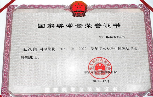 回顾自己的成长历程,王汉阳深知自己的成绩离不开老师的辛勤教导、同学们的帮助以及学校提供的良好平台。他心怀感恩,时刻提醒自己要珍惜这来之不易的学习机会。展望未来,他将继续努力,不断提升自己的专业素养和综合能力。他希望能够在自己的专业领域深入钻研,取得更多的学术成果,为行业的发展贡献自己的一份力量。同时,他也将继续积极参与社会实践和志愿服务活动,用自己的实际行动回报社会,传递正能量,在青春的道路上绽放更加绚丽的光彩。