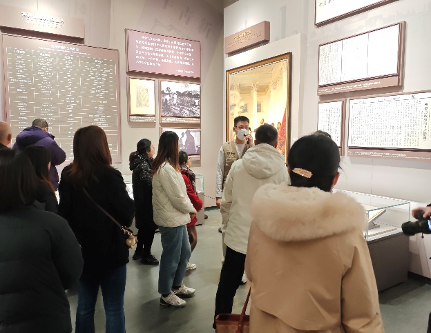 在纪念馆内,党员们认真聆听讲解员的介绍,仔细观看陈列的图片、文献和实物,近距离感受那段波澜壮阔的历史。