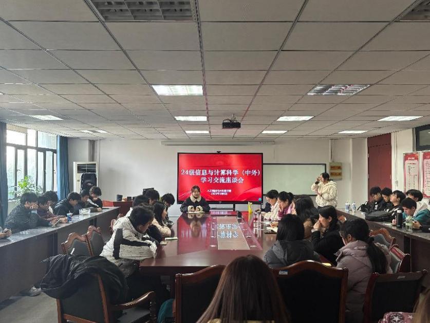 为了促进学校与学生之间的互动,推动学校的发展,助力学生的成长和进步,2025年3月6日人工智能与大数据学院信息与计算科学(中外合作办学)专业在37栋会议室举办了2024级信息与计算科学(中外合作办学)专业师生座谈会。出席本次座谈会的有专业负责人邵桂伟、教学督导孙梅兰、24级班主任赵娟、24级辅导员邓欣辰以及三位专业任课老师蔡婷、刘小瑀、蒋雨雁。