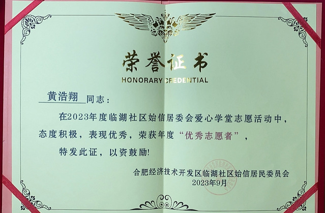 “赠人玫瑰,手有余香”。黄浩翔热心公益,积极参加志愿服务,想把温暖传递给更多的人。在校期间帮助查询课堂出勤率,参与星宝公益活动,为山区的孩子捐献物品,送去祝福。除此之外,他还积极参与社区活动,为始兴学堂、海恒社区的孩子提供陪伴和辅导作用。黄浩翔的热心公益行为为他赢得了赞誉,同时也激励着他身边的人积极参与社会服务,把这份快乐与温暖传递下去,共同营造更美好的校园和社会。