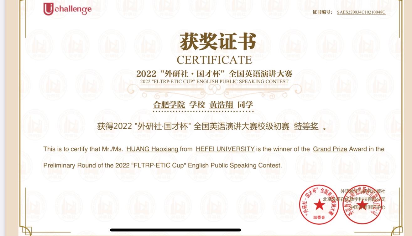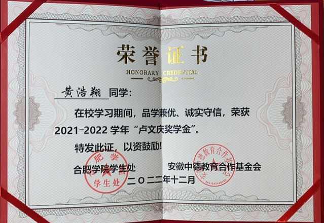 大学四年匆匆而过,黄浩翔十分感谢合大提供的资源与平台,感谢老师与同学们的帮助。大学生活很充实,各个方面都得到了锻炼。不仅收获了知识,同时也收获了成长,面对接下来的征途,他依旧会保持积极乐观的心态,以严于律己、认真负责的标准要求自己。日渐的成熟,不休的锻炼,再加上勤奋的学习与认真的工作,相信他一定会为大学生活画上一个圆满的句点,相信他的明天会变的更加美好和绚烂!