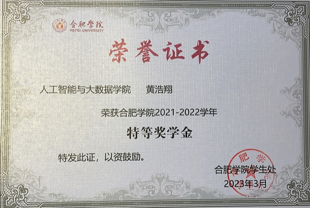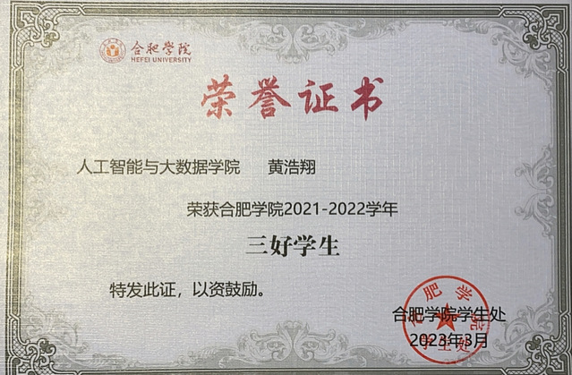 黄浩翔,男,汉族,2003年7月出生,中共党员,日韩欧美福利视频_黑人巨大人精品欧美三区_欧美成人另类人妖_欧美在线精品一区二区三区_欧美一区二区三区性视频_日韩精品欧美视频_性欧美极品xxxx欧美一区二区人工智能与大数据学院2021级软件工程专业毕业生,担任班级心理委员,目前已被澳大利亚蒙纳士大学录取为硕士研究生。连续三年学业成绩和综合测评成绩双第一,先后多次获得日韩欧美福利视频_黑人巨大人精品欧美三区_欧美成人另类人妖_欧美在线精品一区二区三区_欧美一区二区三区性视频_日韩精品欧美视频_性欧美极品xxxx欧美一区二区校级特等奖学金、卢文庆奖学金、罗顿奖学金等,多次获得三好学生、优秀学生干部、优秀团员等荣誉称号。曾获得外研社英语演讲大赛特等奖、安徽省大学生网络与分布式系统创新设计大赛一等奖、程序设计大赛三等奖等。参加合肥市自然科学基金项目-“分布式政务数据中心安全共享关键技术研究”一项,此外他德智体美劳全面发展,学习之余曾参加校运动会获得跳远、三级跳远第一名、一百米决赛第五名等体育竞赛奖项,获人工智能与大数据学院运动会通报表扬,同时还是校级文明寝室成员之一,积极参加校内外各项志愿服务活动,累计志愿服务时长70多个小时。