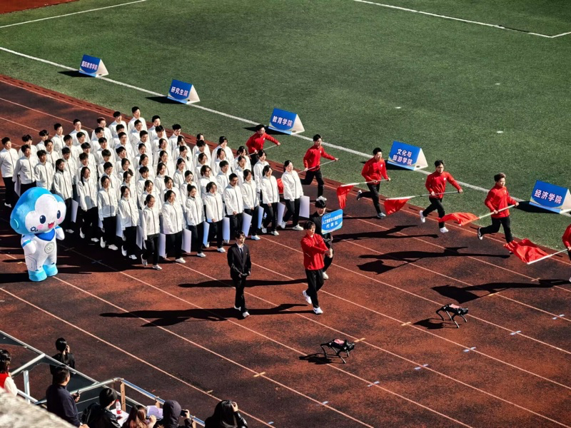 开幕式上,学院师生方阵步伐铿锵、口号响亮,以“数智赋能,青春先行;逐梦赛场,谁与争锋”的昂扬姿态,展现了全院师生的朝气与活力,赢得现场好评。