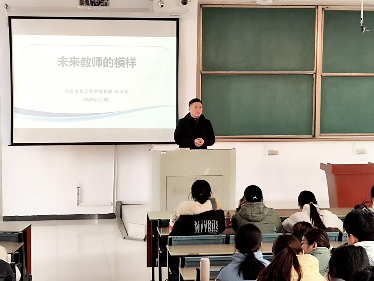 15日下午,我校荣幸邀请到了合肥市教育科学研究院教研员沐方华老师来我校进行了题为《未来教师的模样》的教育专题讲座。讲座从下午3505点在37栋三楼阶梯教室展开,由余海峰院长、姚玉武主任和胡秀林老师以及全体20级、21级数学与应用数学专业学生参加。