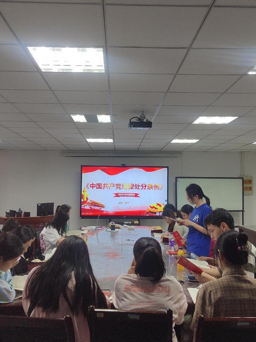 为进一步加强党的纪律建设,提高全体党员干部遵规守纪意识,5月9日晚18点,人工智能与大数据学院学生第四党支部于37栋大会议室召开党员大会,专题学习新修订的《中国共产党纪律处分条例》。本次活动由党员李琪同志主持,以学习《条例》的总体要求和适用范围、违纪与纪律处分、纪律处分运用规则为主要内容,全体党员参加。