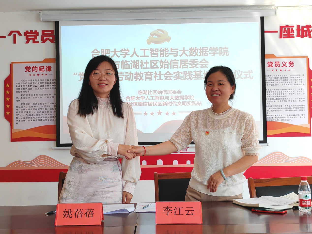 【人工智能与大数据学院党纪学习教育】人工智能与大数据学院与临湖社区始信居委会举行“党建+”劳动教育社会实践基地签约授牌仪式