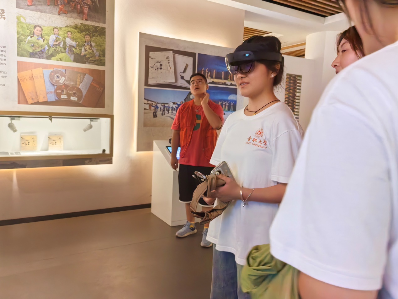 最让志愿者们兴奋的是VR眼镜体验环节。带上VR眼镜,他们仿佛穿越时空,置身一个充满徽州古建筑和传统技艺的虚拟世界。在VR场景中,志愿者们亲身参与了徽派建筑的搭建过程,体验了徽墨制作的精细工艺,感受到了非遗文化的魅力和科技的力量。此次体验让志愿者们深刻认识到科技与传统文化的结合,不仅为非遗文化的传播提供了新的途径,也为传统文化的保护与传承注入了新的活力。