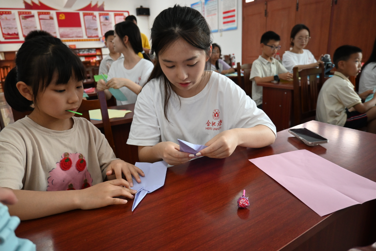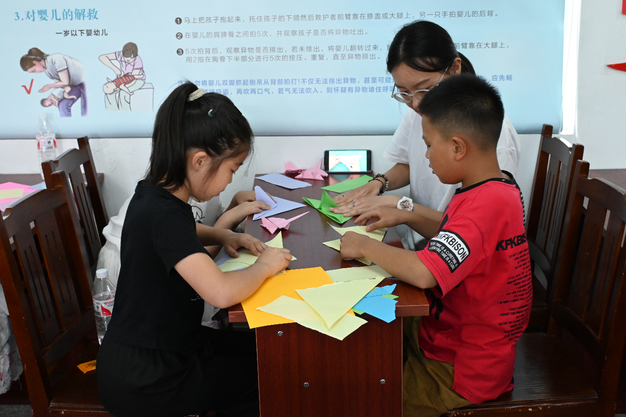 接着就到了有趣的折纸活动。折纸不仅是一种艺术,更是一种能够锻炼孩子们耐心与观察能力的活动。志愿者们耐心地指导每一个孩子,孩子们在折纸的过程中不断尝试,当一件作品完成时,他们的脸上洋溢着满足与自豪的笑容。