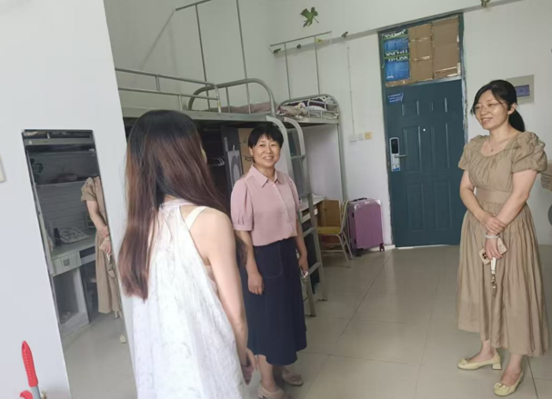 在报道前一天,学院领导班子成员深入一期研究生男生宿舍,仔细查看宿舍的设施设备和实际情况,并在报道当天下午,院领导分别带队走访男生、女生宿舍,为同学们送去新学期的关怀与问候。大家纷纷表示,一定会牢记院领导的嘱托,以饱满的热情投入到新学期的学习和生活中,不辜负学校领导和老师们的期望。