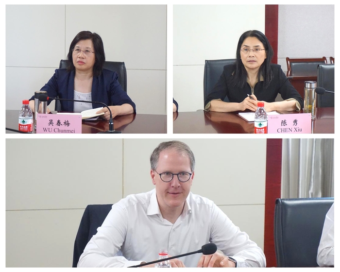 吴春梅、陈秀与拉克勒教授举行工作会谈,就第十六届中德应用型高等教育研讨会筹备、《应用型高等教育》年刊出版、中德物流管理专业发展、信息与计算科学专业课程设置、中外合作办学机构申报及德国学生交流学习等六项事宜达成共识,并形成工作方案。