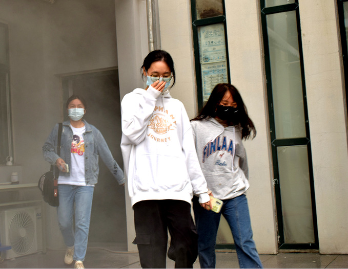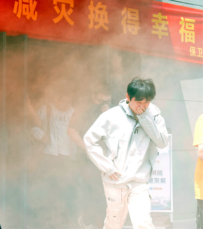 每次演练开始前,保卫处消防科科长周海燕同志将参演的物业安全疏散保障人员集中动员、布置疏散任务及明确安全注意事项。紧接着,所有疏散引导人员到位,提醒学生做好疏散演练准备。随着总指挥演练开始命令的下达,演练正式开始:信号员发出地震来袭信号,学生进入避险流程,楼宇管理员发现突发火情并伴有浓烟,再次发出火灾信号,组织学生疏散;学生按引导员的指示,以最快的速度关闭宿舍内所有电源后,沿就近的消防疏散楼梯向楼外安全地带疏散;同时,由于通道内充斥演习组释放的浓烟,演练学生在浓烟状态下护住口鼻、低姿快速地通过浓烟区,到达安全疏散地点。演练全过程紧凑而不慌乱,达到了5分钟将楼内人员全部疏散的目的,演练取得了良好的效果。