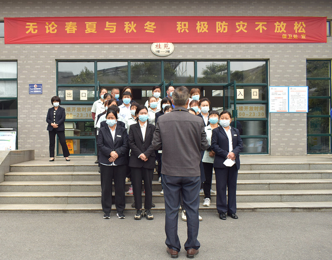 演练结束后,保卫处处长李泽远同志对本次消防疏散演练活动进行了讲评,他要求物业管理人员增强消防安全意识,在任何条件下都要将学生的生命财产安全放在第一位。他要求,物业在日常查寝过程中要加强对学生宿舍违规电器、违规使用明火的管理;提醒学生选用正规品牌插座,如插座损坏要及时更换;马上进入夏季用电高峰期后,更要注意电器防火,提升应急保护能力。