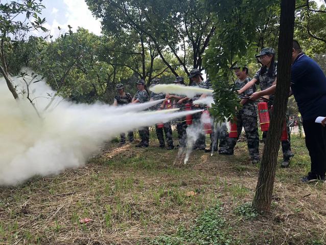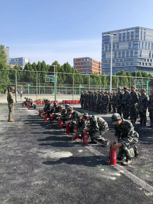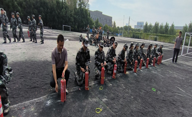 灭火器实喷训练之前,我处消防科及时与承训教官联系,将《灭火器使用教案》及时发放到每名教官手中;实喷开始后,为保障本次灭火器使用的效果和教学质量,我处消防科还组织了2个连队的新生进行灭火器使用和实喷操作的示范教学;其他9个连队新生的教学和实操由承训教官组织。