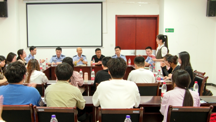 5月21日下午,我校在行政楼一楼会议室开展“护航校园 青春挺膺”网络安全读书交流会活动,特邀省公安厅网安总队苟克愚副总队长等8位公安干警为同学们作专题分享。校团委书记张应杰、副书记李妍妍和20余位学生干部参加活动。