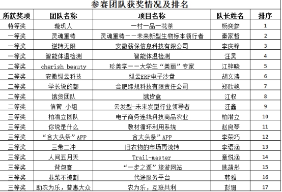 经过激烈的角逐,“一村一品一花茶”荣获得特等奖,并评选 一等奖 3项 ,二等奖 5项 ,三等奖8项 ,创新、创意、创业奖各1项,优秀指导老师6名。
