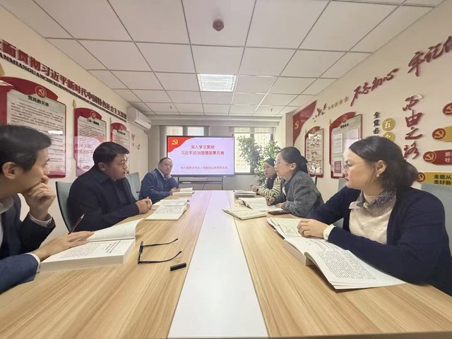 党支部书记张应杰介绍了该书的重要意义和整体框架,并带领全体党员学习了习近平总书记在中国共产党第二十次全国代表大会上的报告。支部成员王慧、丁婧分别领学了相关内容。在交流研讨环节,与会人员纷纷结合自身工作实际,进一步加深了对习近平新时代中国特色社会主义思想的理解和认同。
