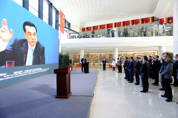 随后,双方共同参观了中德合作共建三十周年成果展,参展过程中,蔡敬民还就学院发展概况、办学定位等做出介绍。在两国总理的留言台处,翟谦为我校题字“不知不觉,先知先觉”。