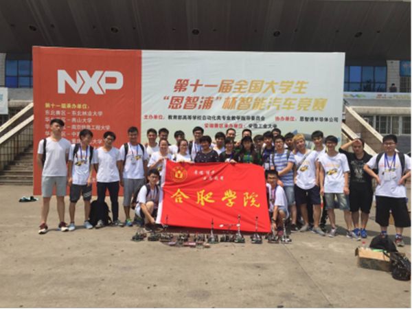 第十一届“恩智浦”杯全国大学生智能汽车竞赛是教育部主办,共八个赛区。安徽赛区由安徽工业大学承办,于2016年7月26日至29日在马鞍山市体育馆举行,参赛队伍33所高校共313支队伍。体育馆无空调、无风扇设备,炎热的夏日,热闷的比赛场所并没有阻挡参赛队员、指导老师们的高涨比赛热情,友谊第一、比赛第二,于29日下午2:00比赛圆满完成。 多年来,合肥学院一直致力于加强对学生工程实践素质的培养以及科技创新的培养,本项目是由电子信息与电气工程系李秀娟负责,指导教师团队由李秀娟、储忠、刘伟3位教师组成。电子系每年9月底动员全院学生自愿报名,今年参加培训共有320多名学生。10月份举办了技术讲座,各报名学生自行组队、提交报告,通过答辩、面试等考核方式,共选出了20支队伍60名队员参加4月份院选拔赛。由院赛预选出10支优秀队伍(含有电子系28人、计算机系1人、机械系1人学生)参加省级竞赛。三个多月的集训后,组织模拟比赛10支队全部通过考核,获取省赛参赛权。在一年的参赛准备中原电子系主任谭敏教授多次到智能控制活动室检查指导参赛学生,更促进参赛队员的科技创新激情。 近一年的辛勤设计准备,在这强手集聚的比赛现场中,在电子系主任王庆龙、指导老师和队员们精心策划各种比赛方案,及时应对赛场出现的各种情况,电子系10支参赛队伍在第十一届“恩智浦”杯全国大学生智能车竞赛安徽赛区暨第九届安徽省智能车竞赛中荣获一等奖4支队伍、二等奖6支队伍的好成绩。