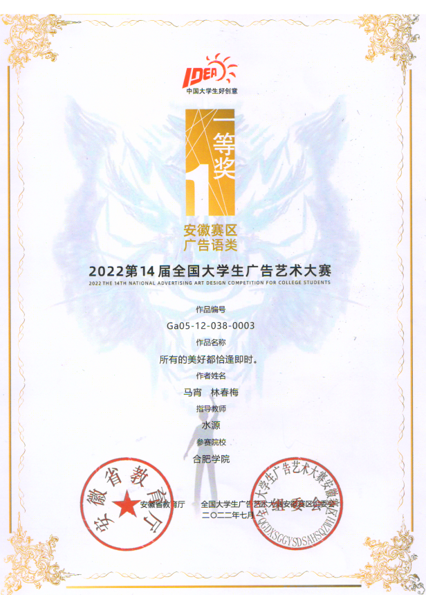 在校期间获得过国家奖学金、两次国家励志奖学金、特等奖学金、一等奖学金、二等奖学金,以及40多项省级奖项“互联网+”大学生创新创业大赛、安徽省环境设计大赛、全国大学生广告设计大赛等8项优秀个人志愿者荣誉证书,志愿服务时长已达420h积极参加活动,如山东省青鸟计划、合肥市志愿长期帮扶活动等。