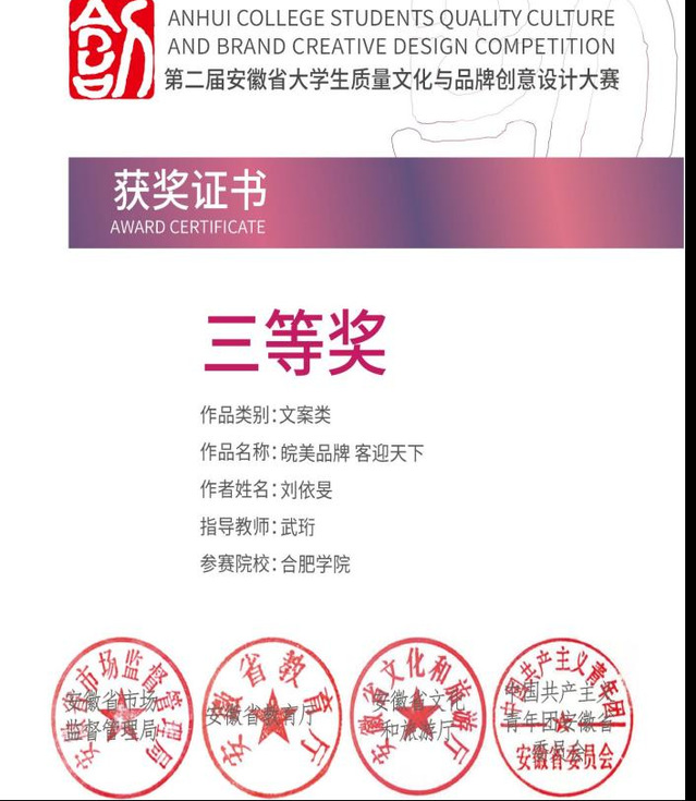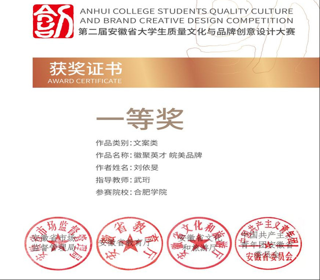 荣获安徽省质量文化与品牌创意设计大赛一等奖,三等奖;